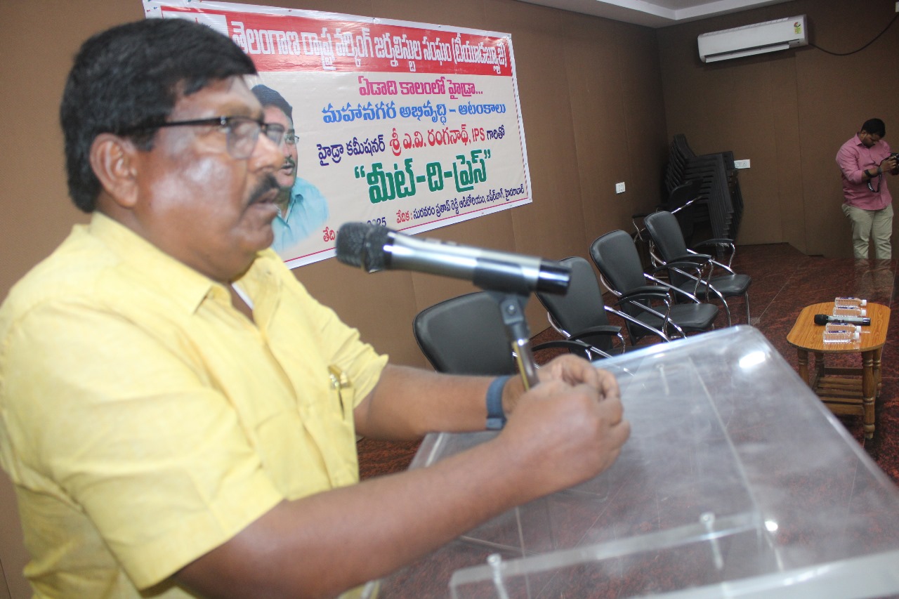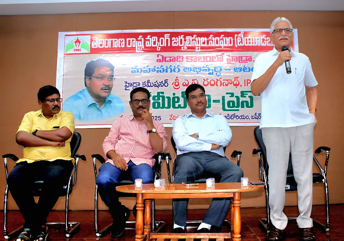 Today TUWJ organized a Meet- The – Press program with A.V.Ranganath, IPS, Commissioner of the Hyderabad Disaster Response and Asset Protection Agency (HYDRAA), on the topic of